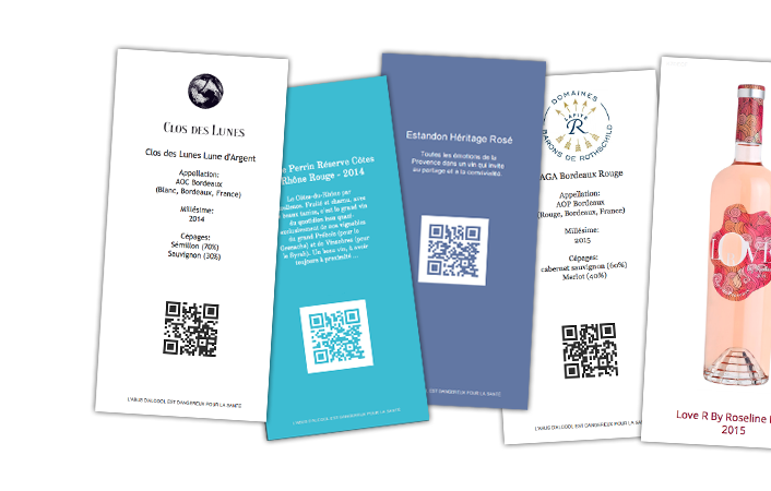 Nous avons conçu ce présentoir au format 10x21, ce qui permet sur un A4 de vous proposer un verso et deux options pour le recto. Le verso - au centre - vous permet de bien identifier votre produit lors de la mise en place. Le premier recto - à gauche - reprend la présentation courte de votre vin et invite l'acheteur à lire la suite sur smartphone. Le second recto - à droite - détaille les principales caractéristiques du vin : appellation, millésime et cépage. A vous de choisir en fonction du vin ou du contexte de l'événement.