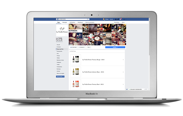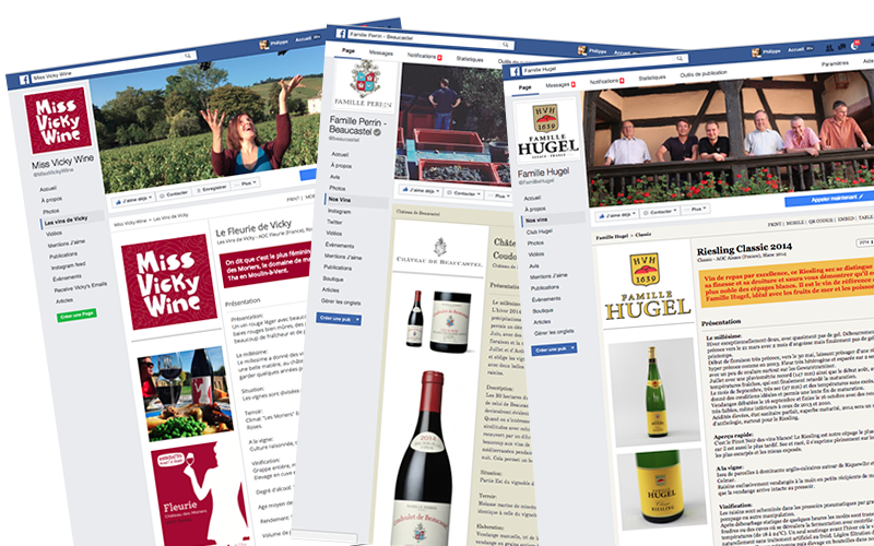 Avec l'application Fan Page Facebook, vous ajoutez à votre fan page sur desktop un onglet Nos Vins. Celui-ci présente l'ensemble des vins de la marque de votre choix. Vos fans pourront ainsi consulter votre catalogue produit à tout moment sans avoir à quitter Facebook et partager facilement vos fiches vin sur leur propre fil d'actu.